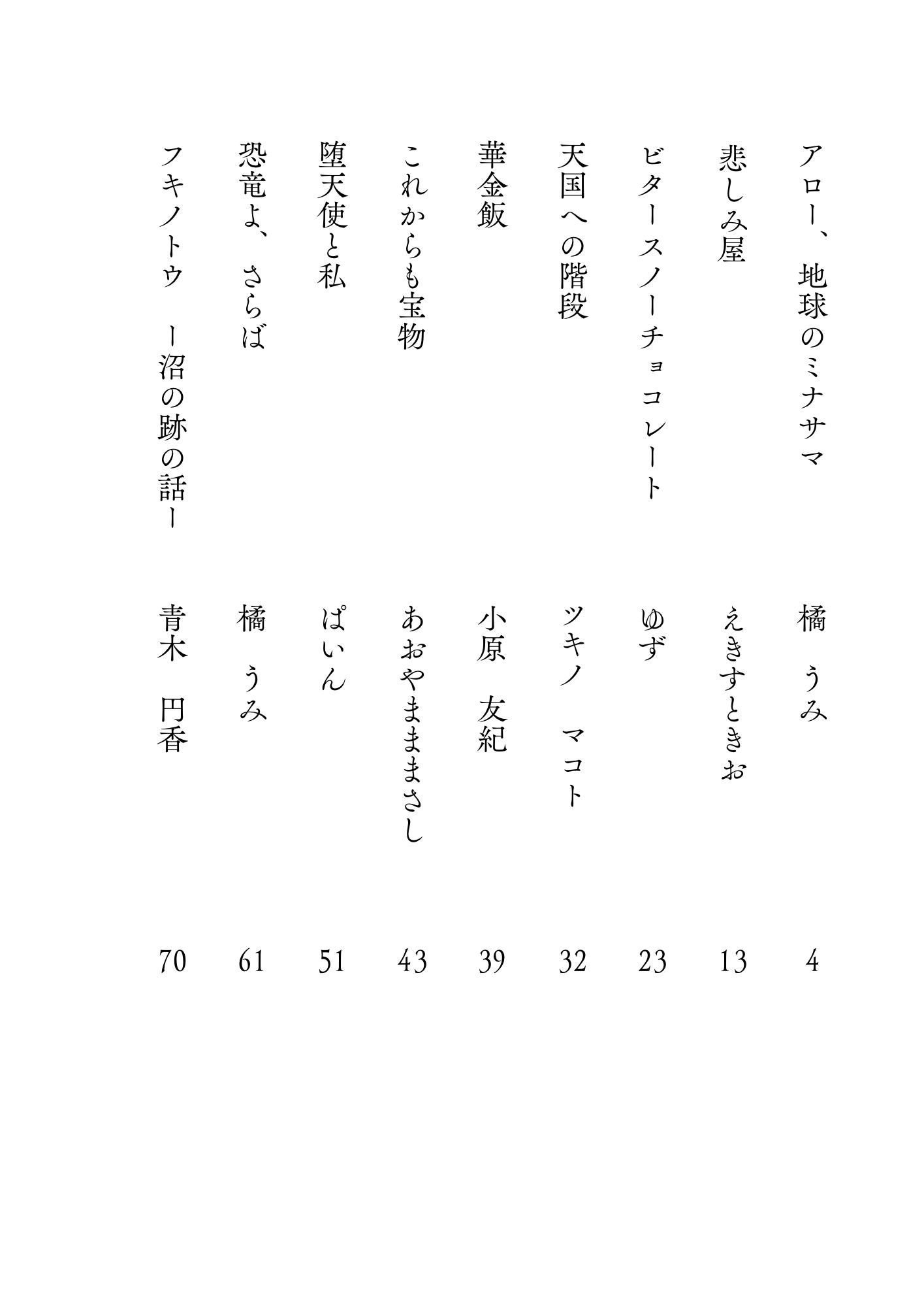 橘うみ/えきすときお/ゆず/あおやまままさし/ツキノ マコト/小原友紀/ぱいん/青木円香/樫山泰士/江川知弘/石田皓人/